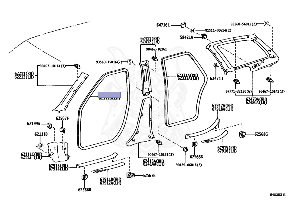 | 62332-21070-B0 | WEATHERSTRIP, REAR DOOR OPENING TRIM, LH |