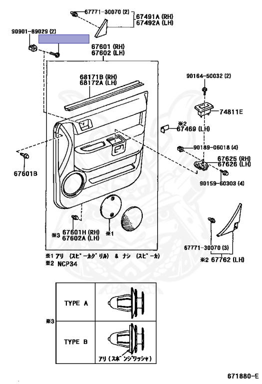 | 90467-12009 | Clamp, No.1 (for Luggage Door Lock Control Cable) |
