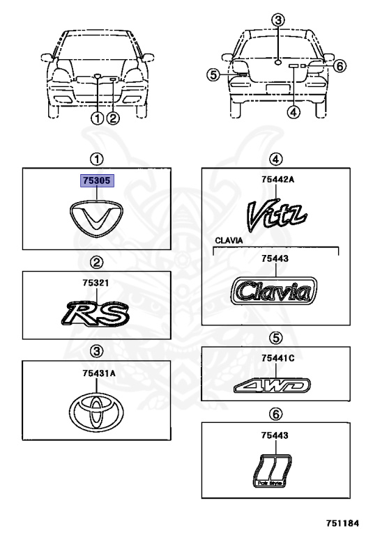 | 75431-0D010 | Emblem, Back Door, No.1 |